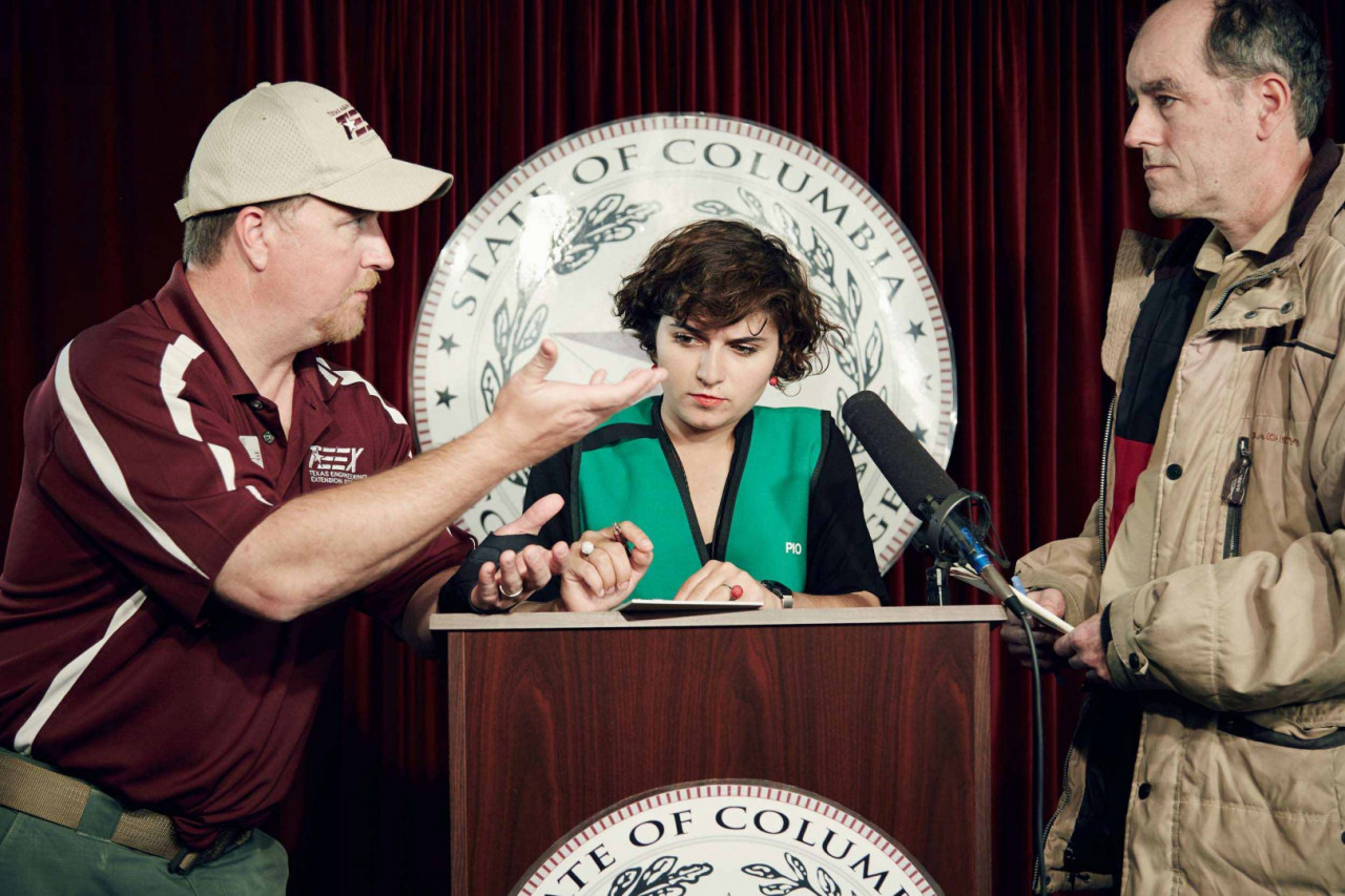 Enactments and theatrical performances with an invited audience developed in situ with local Disaster Assistance and Rescue Team (DART). Script and production design based on fieldwork and Disaster Playground feature documentary.
